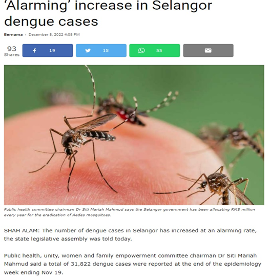 Traditional entomological surveillance to track the spread, additionally, other entomological indicators, such as the percentage of positive ovitraps, eggs per ovitrap, eggs per block, and percentage of positive blocks to Aedes aegypti and/or Aedes albopictus, are also in practice. However, the raise in diseases due to larvae produce spiking up.
